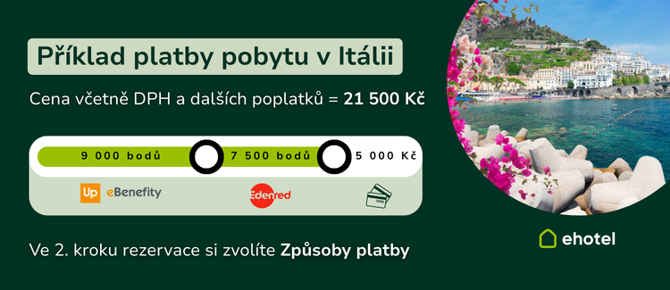 - Doplatek z vlastní kapsy – Pokud body nepokryjí celou částku, zbytek jednoduše doplatíte bankovním převodem, platební kartou nebo ehotel poukazem.