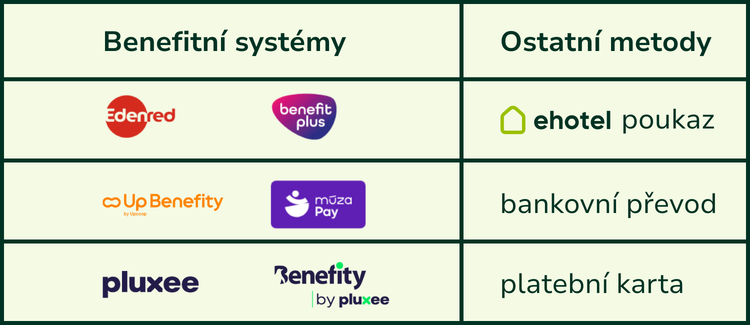 Díky našemu širokému napojení na benefitní společnosti můžete libovolně kombinovat tyto metody: